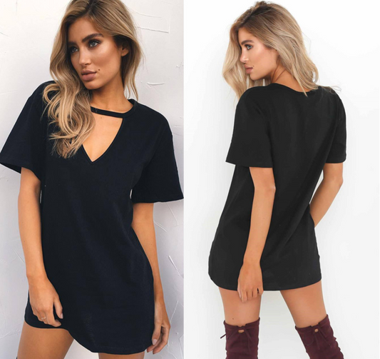 V-neck short-sleeved loose T-shirt dress