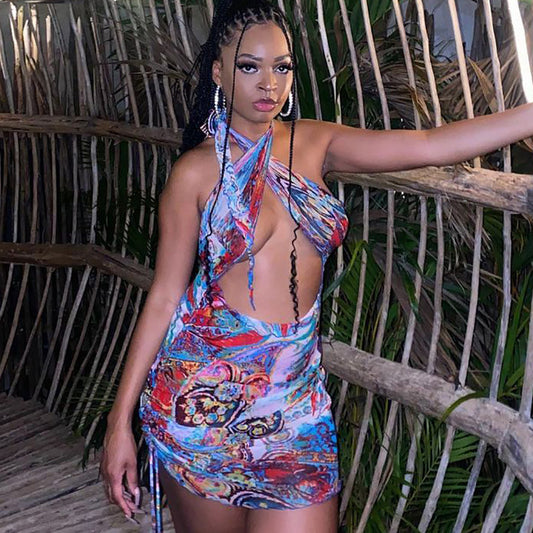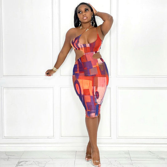 Digital Printed Sexy Sling Bag Hip Dress