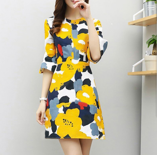 Wild temperament slim print dress
