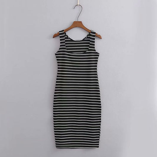 Striped Vest All-match Slim Slimming Sleeveless Dress