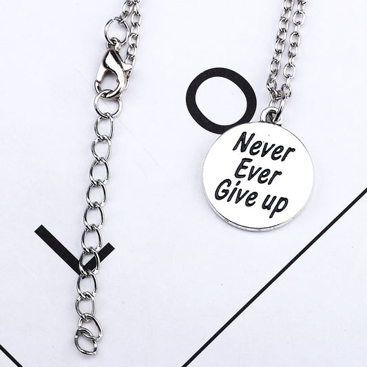 Round English Alphabet Sign Never Give Up Inspirational Necklace