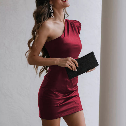 Fashion Women's Solid Color Bag Hip Sexy Dress
