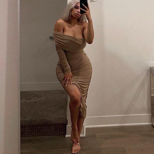 Bandage Dress Women Sexy Off Shoulder Long Sleeve Slim Elastic Bodycon Party Dresses Gowns