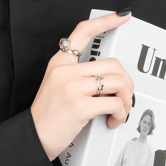 Female Niche Abstract Wave Pattern Irregular Concave-convex Matte Ring