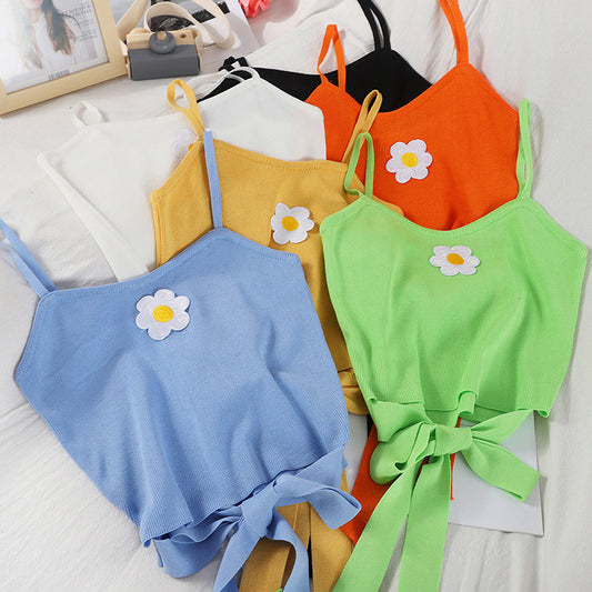 Embroidered floral slim knit suspender top