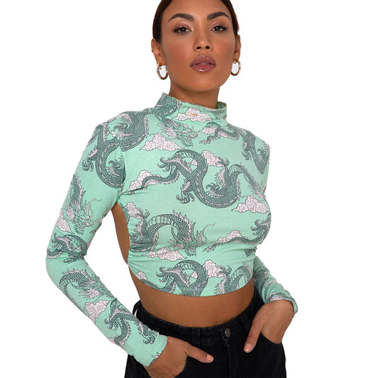Fashion Printed Short T shirt Women Long Sleeves