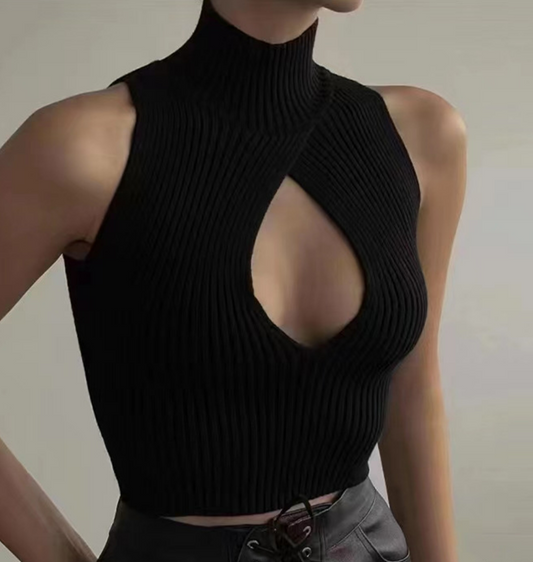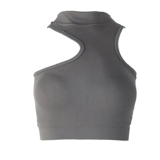 Half Turtleneck Short Cropped Navel Irregular Top With Chest Pad