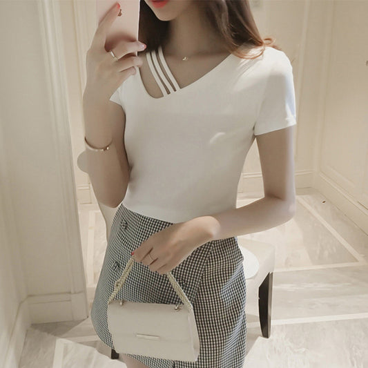 Short-Sleeved T-shirt Women Summer Korean Version Of The New Women's Ins Student V-Neck Top Women's Clothing