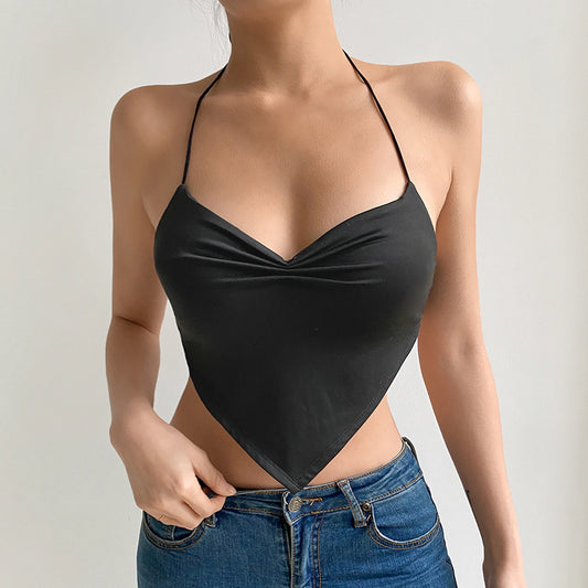 Solid Color Hanging Neck Small Bust Hollow Out The Umbilical Cord Thin Spicy Girl Bi Ready Suspenders Female