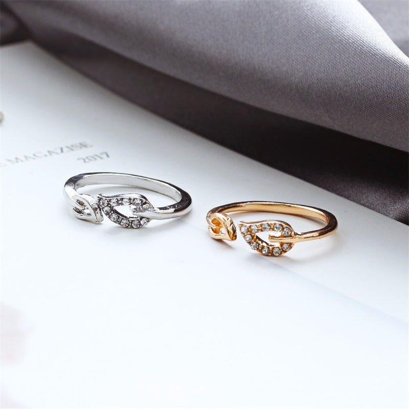 Fashion Flash Diamond Love Ring Leaf Rhinestone