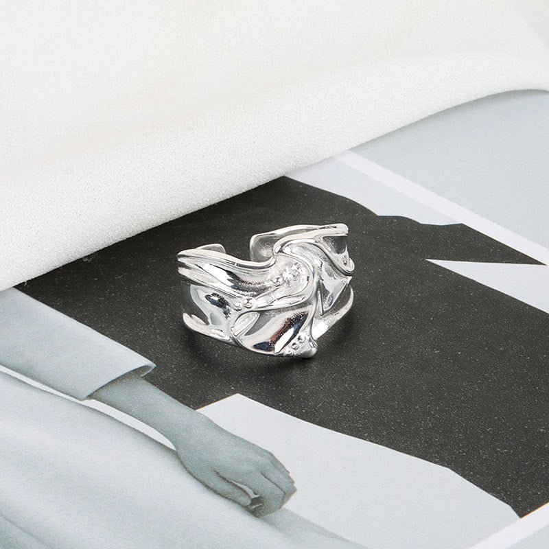 Irregular Bumps And Micro Inlaid Zircon Ring